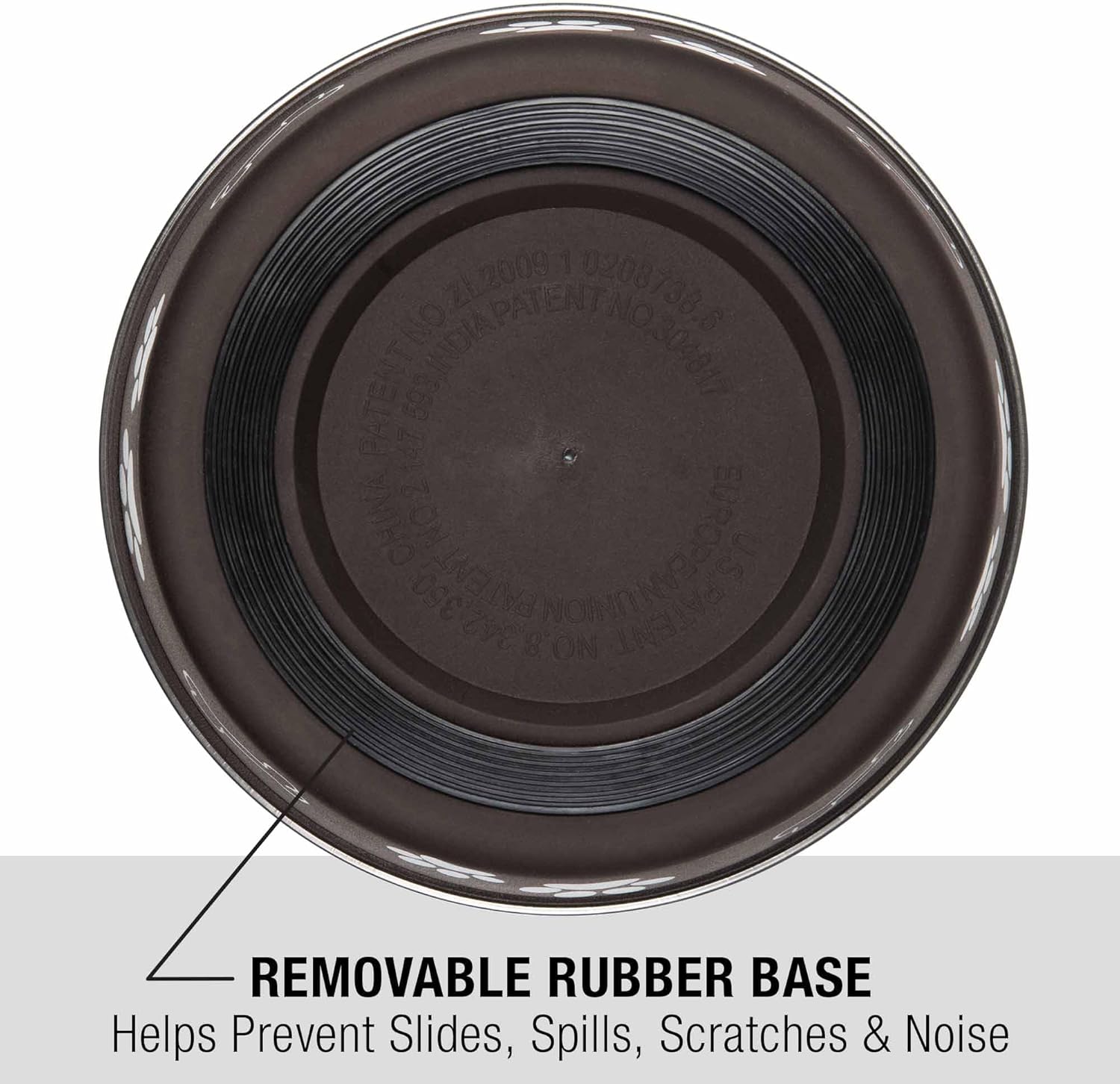 - Veterinarian recommended stainless steel interior. Removable soy-based rubber ring prevents spills and reduces noise. Dishwasher safe; remove rubber ring before washing. Available in five colors and 4 sizes to fit any decor1-Pint bowl
