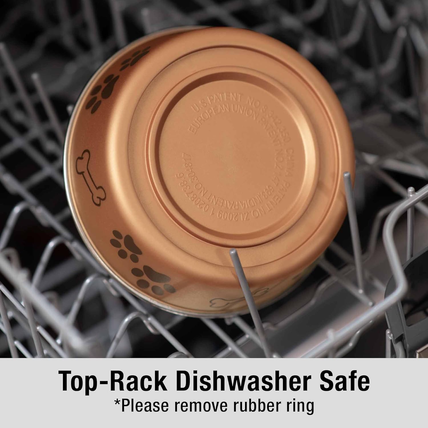 - STAINLESS STEEL & DURABLE - Bella Bowls features a stainless steel design with a poly-resin exterior great for dog food mat, which makes them dish washer safe and easy to keep clean and hygienic. Perfect cat food bowl or dog water bowl for home & travel.