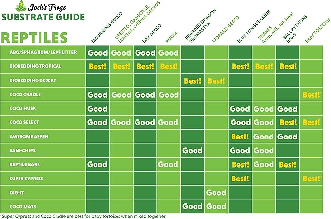- MORE UNIQUE SUBSTRATES from Josh’s Frogs! We also offer Dig-It, ABG Mix, Coco Cradle, BioBedding, incubation media, feeder insect beddings, various shredded barks like Aspen, Cypress, Pine, and more!