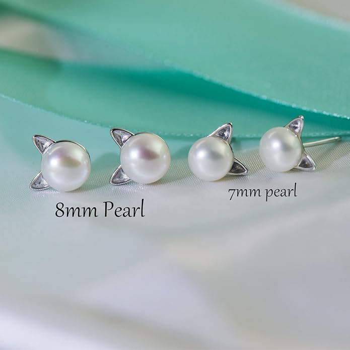 - Size:The sterling silver cat earrings pearl diameter is about 0.8cm-0.85cm(0.31”-0.33“),Total cat earring diameter is about 1.1cm(0.43").