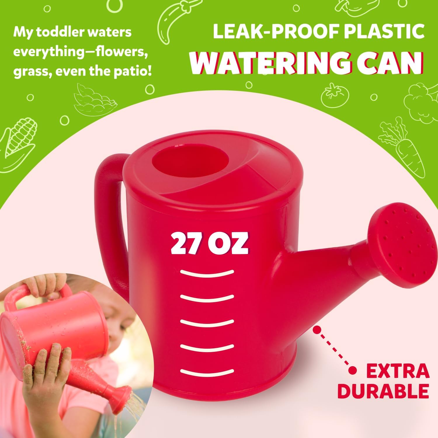 - DURABLE WATERING CAN – LEAK-PROOF, NO CRACKS OR CHIPS! – Made from thick, high-quality plastic that won’t break like cheaper ones. “My toddler waters everything—flowers, grass, even the patio!”