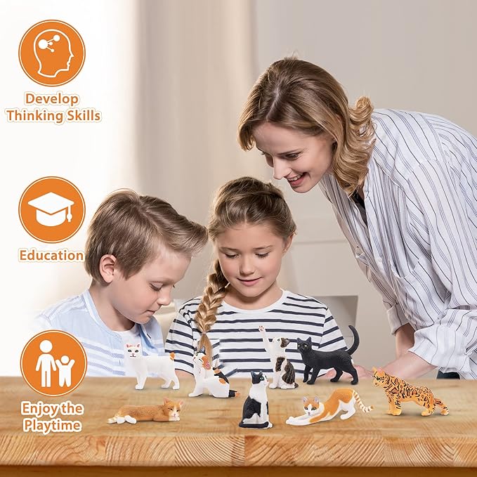 - ā EDUCATIONAL ANIMALS PLAYSET - These were great for education purposes, creative play, cat party favors, school projects, baby shower and crafts. It will help to improve children's concentration and outsight, develop and train their imagination and creativity. Parents can tell the children stories about the information of the animals or the happy life of the animal family, it will improve the parent-child relationship.