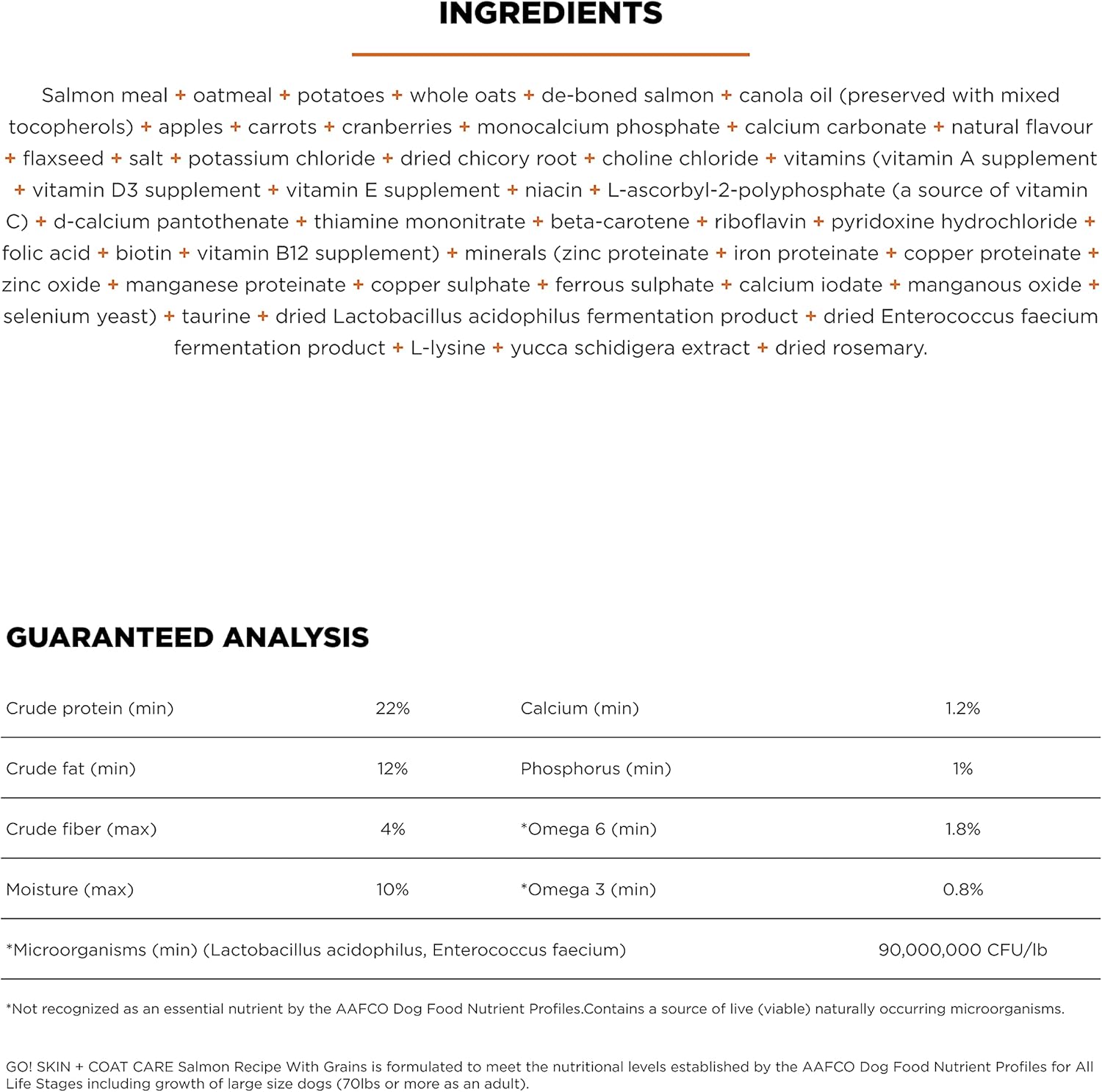 Go! Solutions Skin + Coat Care, Dry Dog Food, Salmon Recipe with Grains, 12 lb Bag
