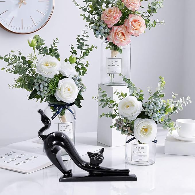 DreamsEden Cute Black Cat Statue - Modern Art Sculpture Resin Animal Figurine Decoration for Living Room Shelf Decor