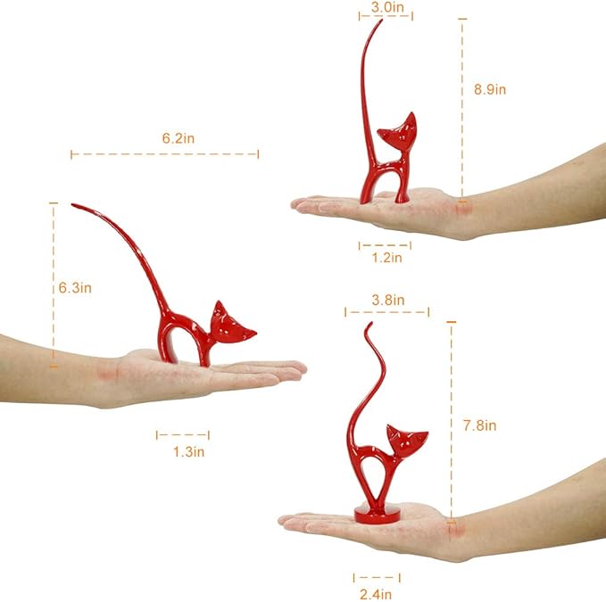 DreamsEden Resin Cat Figurines - Small Animal Statues Shelf Home Decor Accents Art Ornament, Set of 3 (Red)