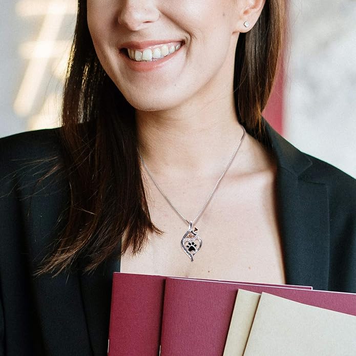 - 🐾【STYLISH】❤ "A thing of beauty is a joy forever." Love Heart Dog Paw Necklace with Bone is a Great Gifts for Dog Owner, Girlfriend, Friends, Mom, Gifts for Mother in Law, Gifts for Wife, Gifts for Daughter, Gifts for Grandma, Gifts for Granddaughter, etc.