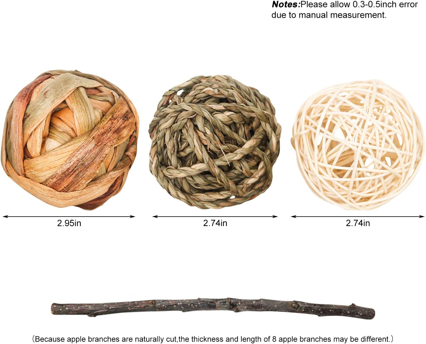 - Suitable for rabbits, bunny, hamsters,gerbils,guinea pigs and other or other rodents. Package includes: 9 pcs pet activity balls and 8 pcs apple sticks.