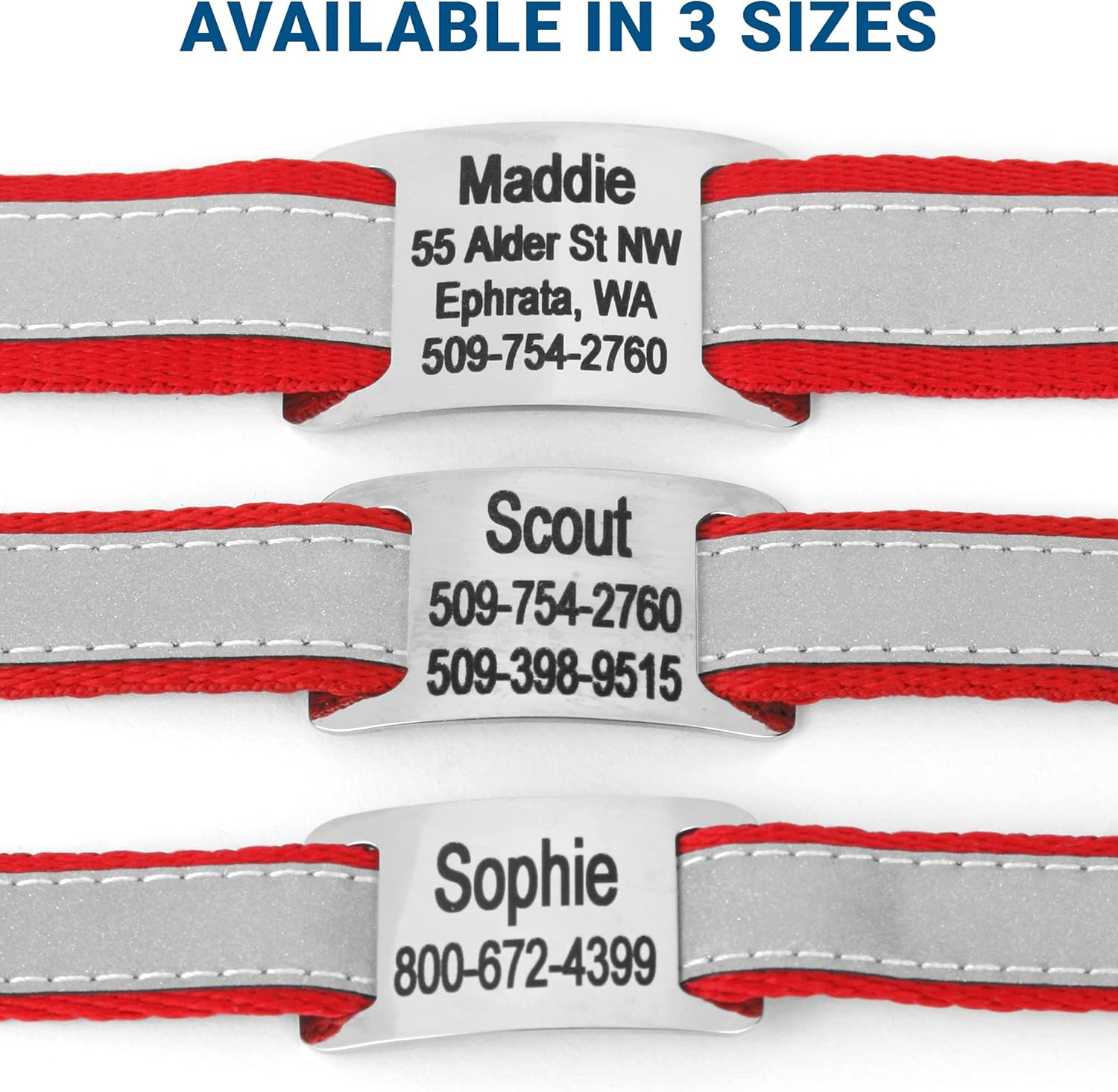 GoTags Reflective Personalized Dog Collar with Nameplate, Adjustable Dog Collar with Custom Engraved Steel Slide On Pet ID Tag, Silent, No Noise Dog Tag for Large Medium or Small (Red, Medium)