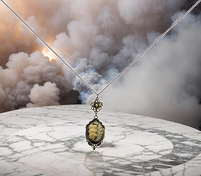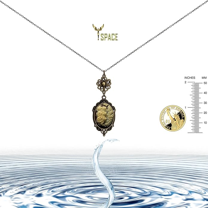 - Very good gift for present / Highest quality and unique design / Contents : Pendant, 2pc chain(18", 24"), Velvet Pouch(Deluxe pouch also help for gift use a drop of perfume and then perfect) / Material : Brass, Resin Cameo / Size : Pendant(1.49* 0.94inch), Chain(18, 24inch) / Weight : about 0.5 oz