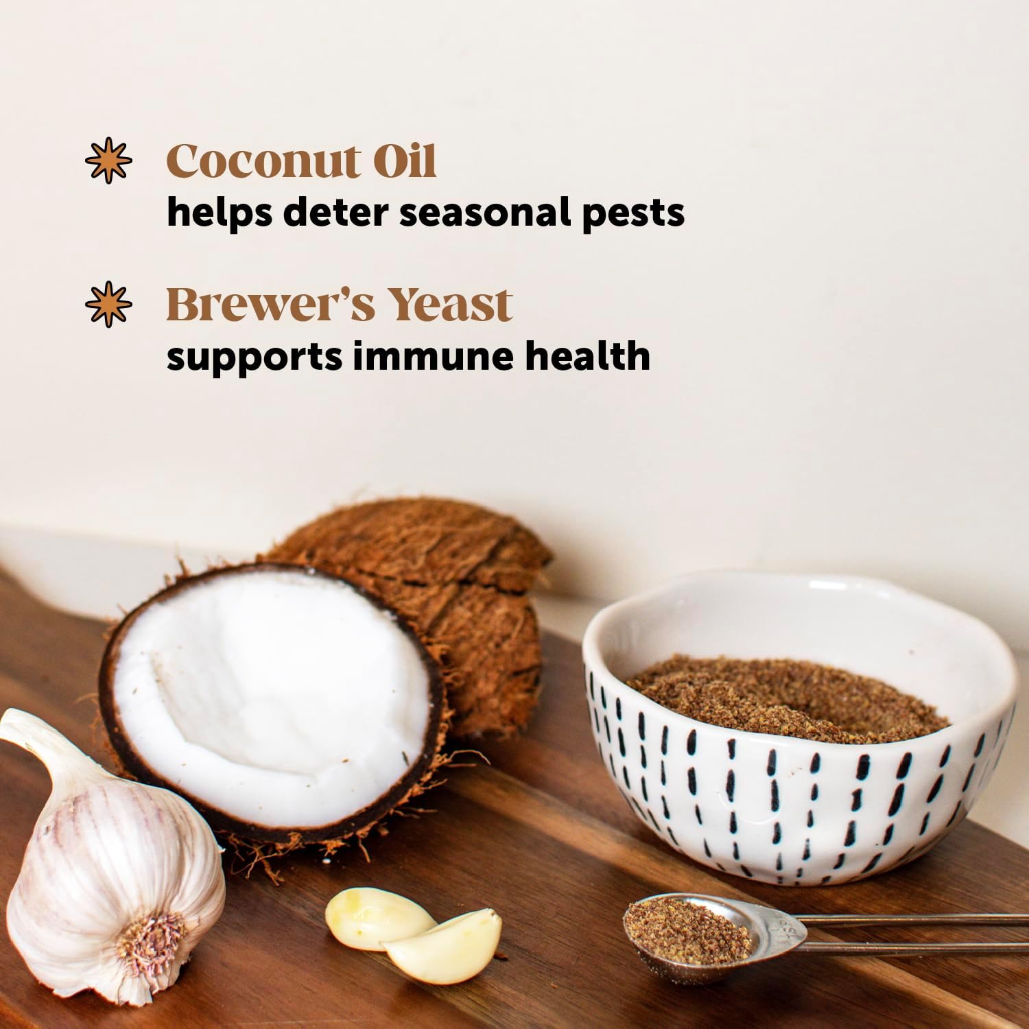 - BUILDING BUG RESISTANCE - Specifically formulated levels of natural ingredients like coconut oil, garlic, B vitamins & omegas help build up a daily long-term internal resistance to pests. Oh, and did we mention that that 9 out of 10 dogs love the taste.* *based on a 3rd party feeding study. Individual results may vary.