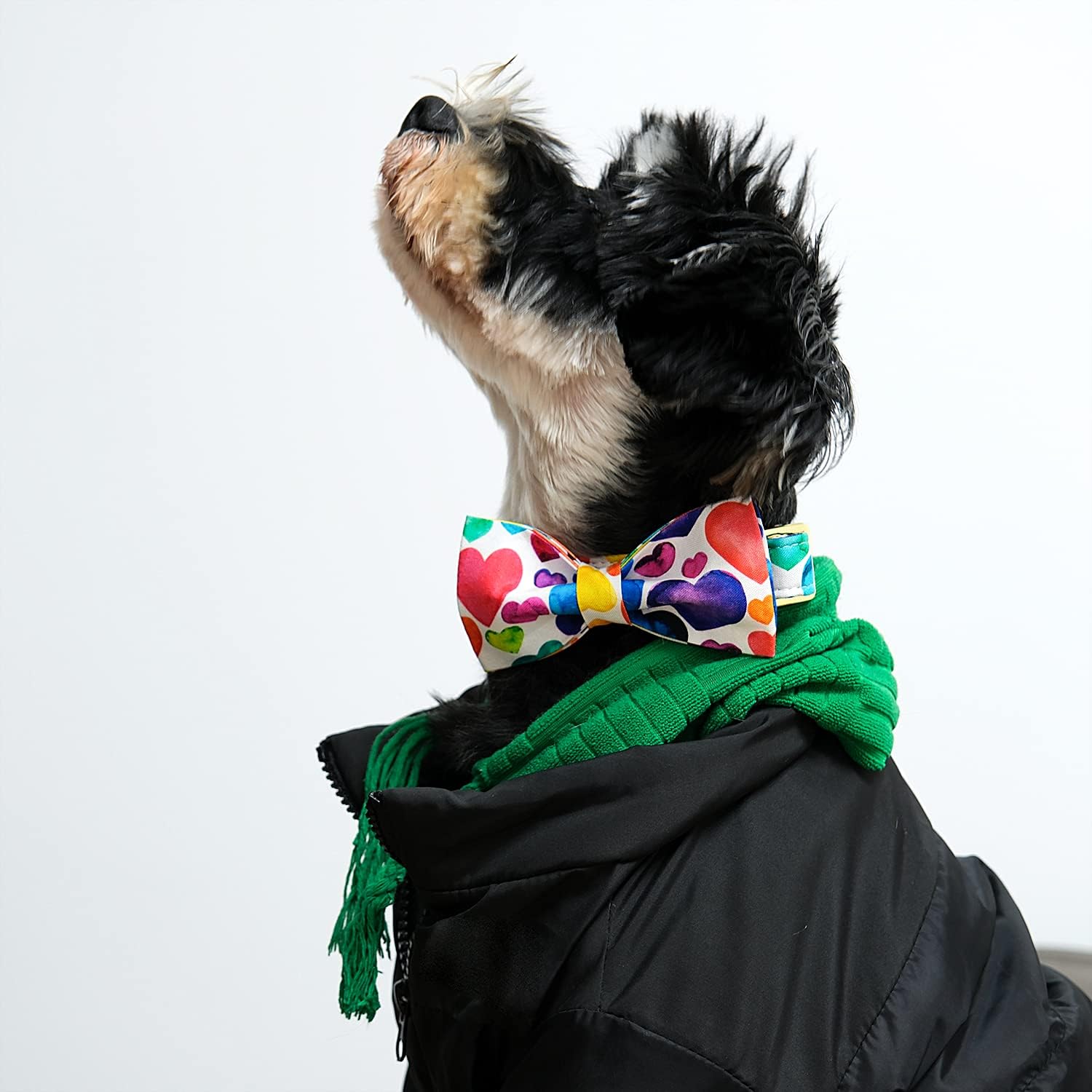 Lionet Paws Valentine's Day Dog Collar with Bowtie, Soft and Comfortable, Adjustable Collar for Small Dogs, Neck 10-16 inches