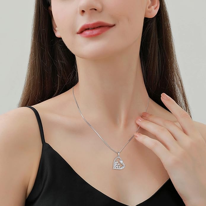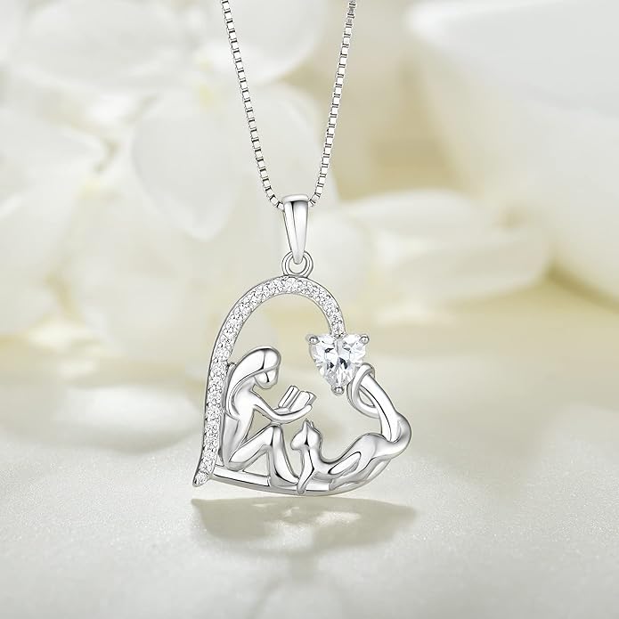 YL Women's Cat Necklace 925 Sterling Silver Heart Pendant Filigree Moon Jewelry for Girls