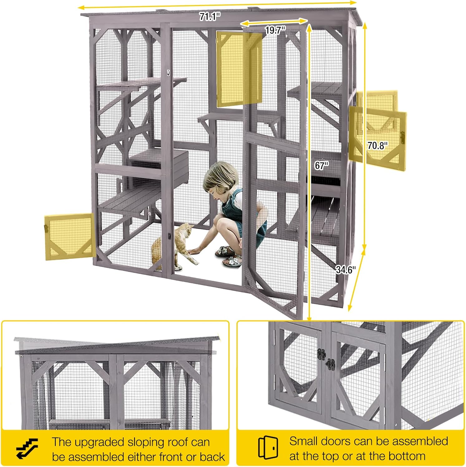 Aivituvin Catio Outdoor Cat Enclosure Large Walk in Cat Kennel Kitten Cage with Platforms and Small Houses