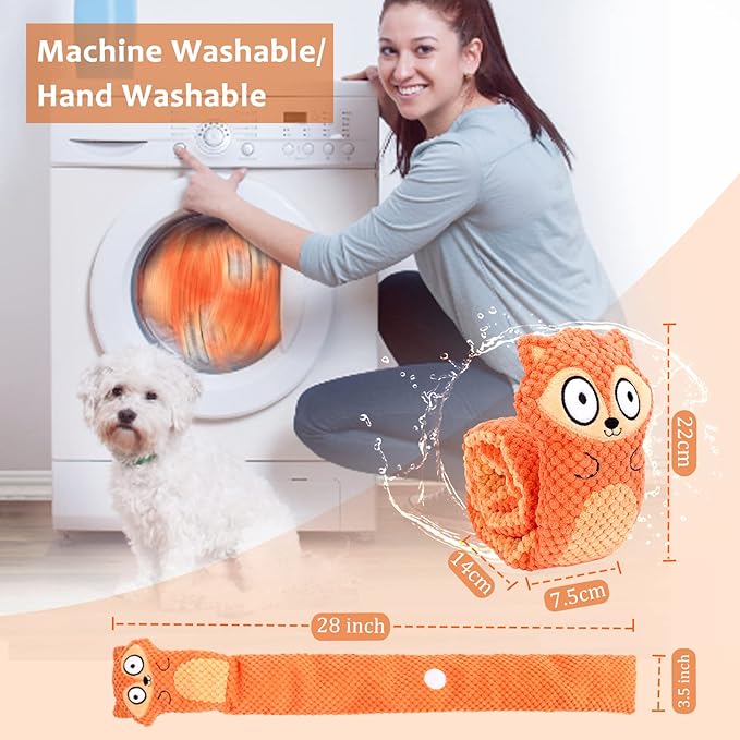 - Safe and Easy Cleaning:The squeaky dogs toys have thick velvet and snuffle which is quite suitable for teething and dental cleaning. The funny toy is very easy to clean,it can be washed by washing machine or hand