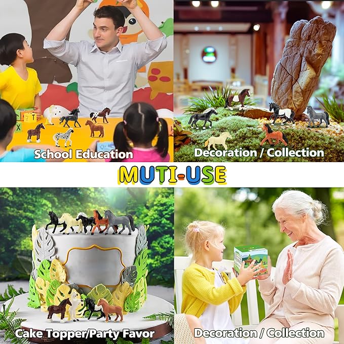 - ✔ EDUCATIONAL HORSES TOY PLAYSET - These were great for education purposes, creative play, party favors, school projects, teacher rewards, baby shower and crafts. It will help to improve kid's concentration and outsight, develop and train their imagination and creativity. Parents can tell the children stories about the information of the horses, it will improve the parent-child relationship.