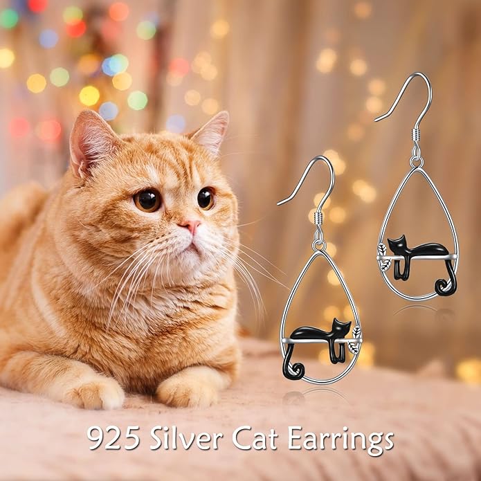 - ❤MATERIAL❤: Cat dangle earring is made of the hypoallergenic 925 Sterling silver, it allows comfortable wearing, especially for those with sensitive skin.