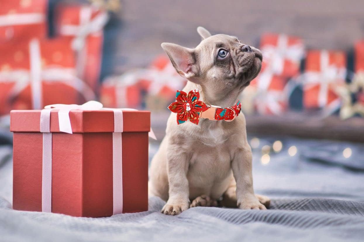 Lionet Paws Christmas Dog Collar with Flower, Dog Flower Collar with Metal Buckle for Dogs and Cats, Adjustable Comfortable Dog Collar Girl Gift, XS, Neck 8-12 in