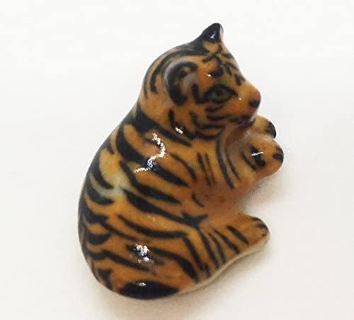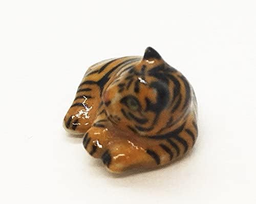 WitnyStore Tiny ⅝ Inch Orange Curled Up Tiger Cub Figurine - Miniature Hand Made Ceramic Panthera Wild Cats Lion Jaguar Leopard Panther Animal Small Porcelain Decorative Collectible Figure Décor Gifts