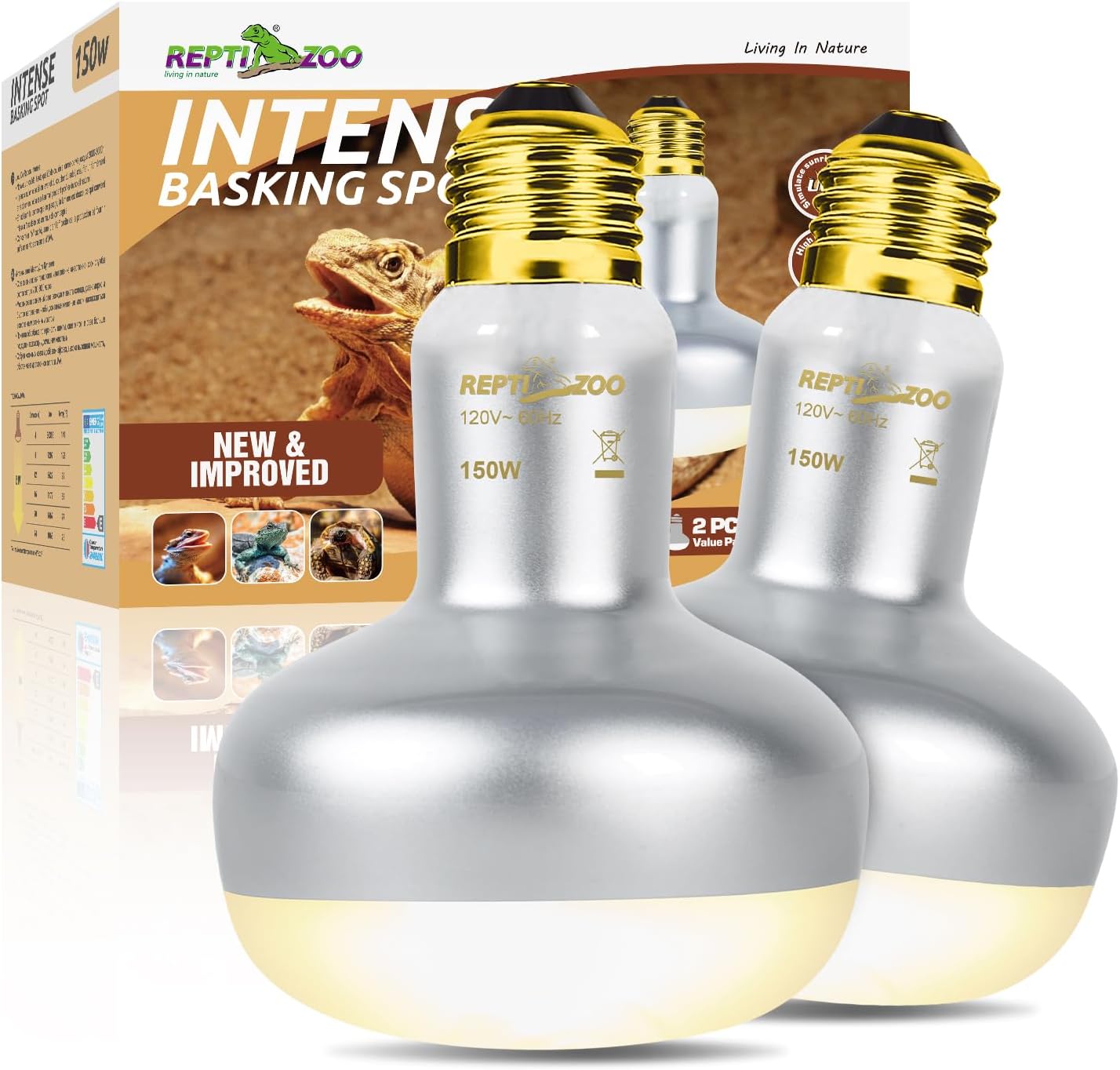 REPTI ZOO 2 Pack Heat Lamp 150W, Intense Basking Spot Simulated Natural Sunlight Heating Lamp Bulb, Heat Emitter UVA Heat Lamp Bulb for Reptile Chickens Pet Brooder