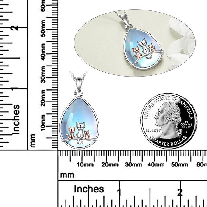 POPLYKE Cat/Family Cat Necklace for Women 925 Sterling Silver Celtic Moon Cat Wiccan Jewelry for Wife