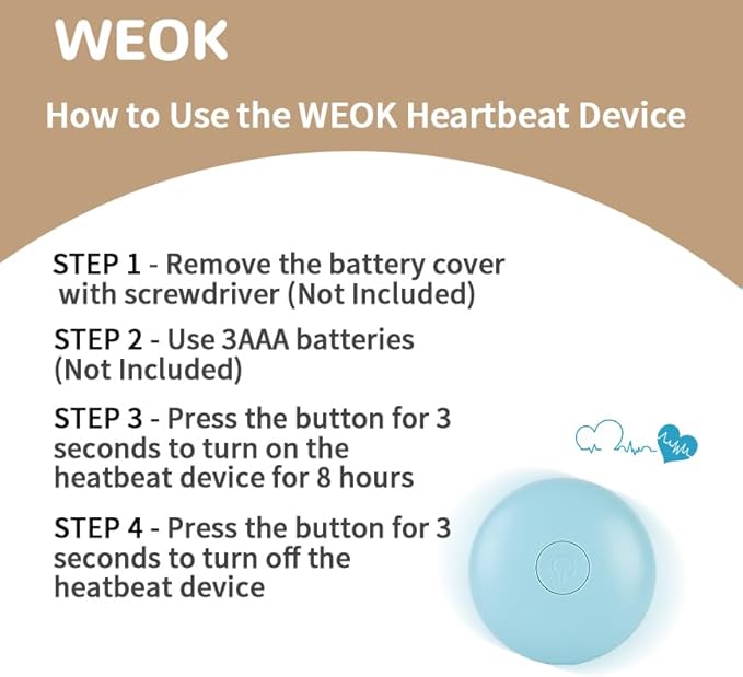 - Anxiety Relief: The heartbeat puppy toy simulates an atmosphere of accompany, it can help puppies and cats to relief the separation anxiety, loneliness, go through the tough time and adapt the new home or other complex environment. it is a good behavioral training aid toy which could comfort your puppies sleep better.ππImportant tips for heartbeat device: Press and hold the switch long enough, it works; Press and hold the switch long enough, it stops.