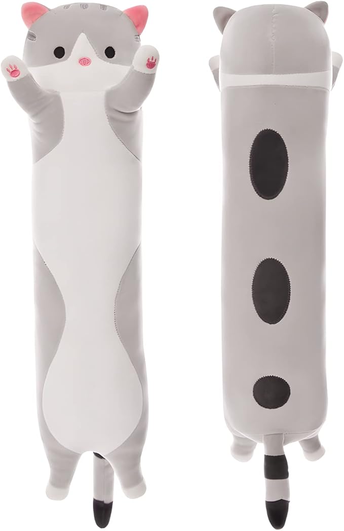 - CUTE CAT STUFFED ANIMALS--This cat plush pillow can be accompany you or your friends through lonely time,our cat plush hugging pillows are also a comfortable body pillow for adults. You can rely on it when resting, sleeping, and working, super soft. When you embrace the kawaii kitty pillow, it will relieve your tiredness and unhappiness of the day.