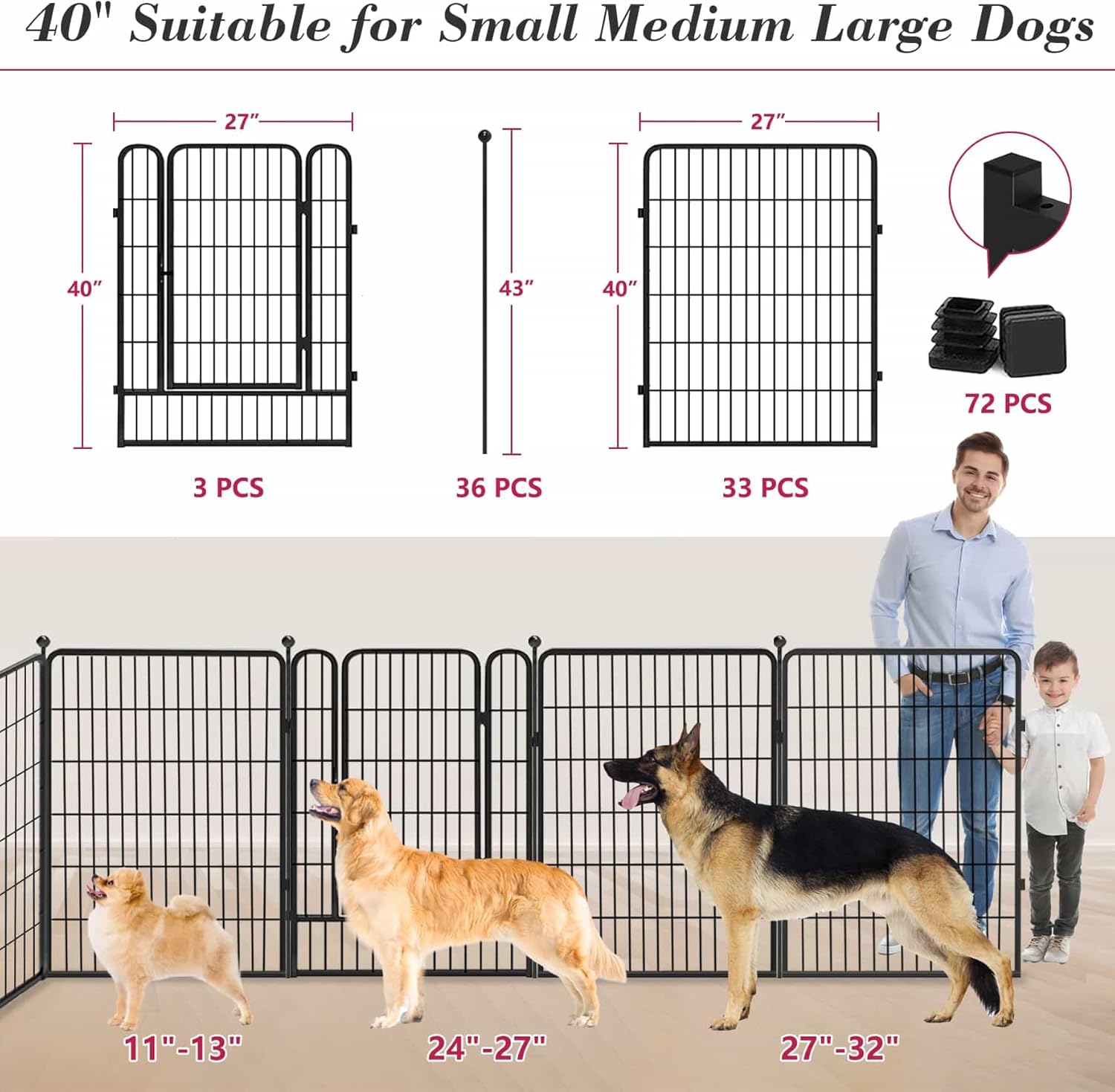 Dog Playpen 40 inch 36 Panels Indoor Outdoor Dog Pen for Large/Medium/Small Dogs Heavy Duty Metal Dog Fence Outdoor for Yard, Puppy Playpen with Door Portable Pet Fence for RV Camping Yard