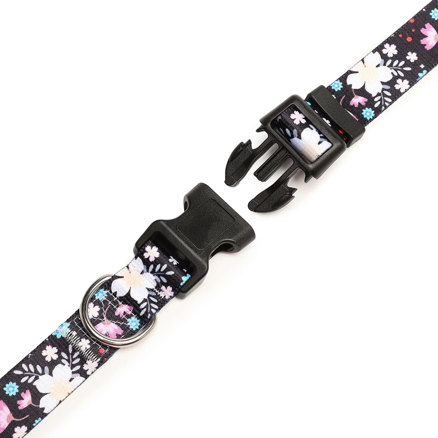 Mercano Adjustable Dog Collar - Special Design Patterns, Soft Nylon Comfortable Durable Pet Collar for Small Medium Large Dogs (S, Floral White)