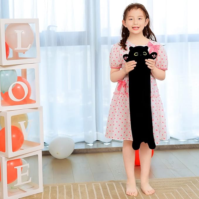 Long Black Cat Plush Toy - 27.5in Hugging Pillow, Cute Stuffed Animal Gift for Kids (70cm/27.5in)