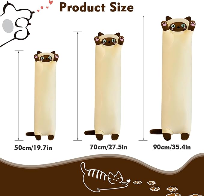 - LONG CAT PLUSHIE--the cat body pillow is made of high quality PP fabrics padding,good elasticity, no deformation when you pulled it,very full, soft and fluffygiving you super comfortable enjoyment