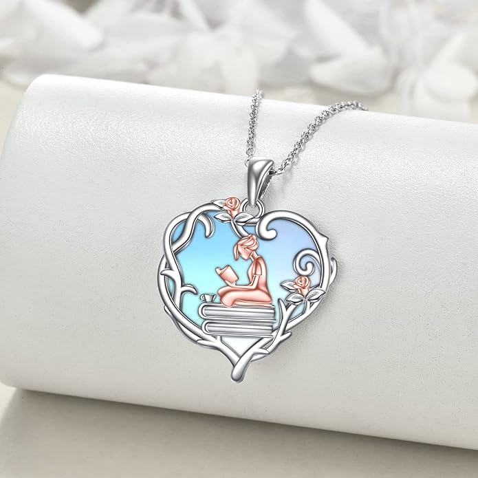YFN 925 Sterling Silver Book Lover Necklace Reading Pendant for Women Graduation Gift Jewelry for Student Friends Classmate