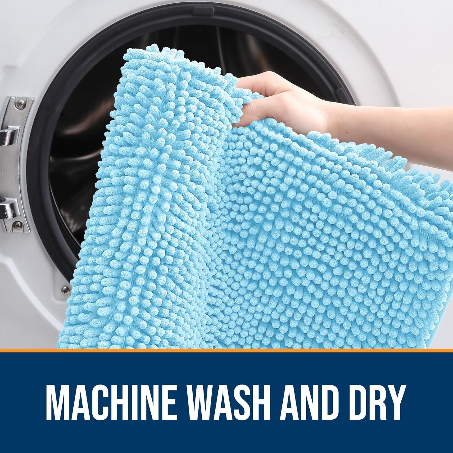 OLANLY Dog Door Mat for Muddy Paws 47x24, Absorbs Moisture and Dirt, Absorbent Non-Slip Washable Doormat, Quick Dry Chenille Mud Mat for Dogs, Entry Indoor Entryway Carpet for Inside Floor, Blue