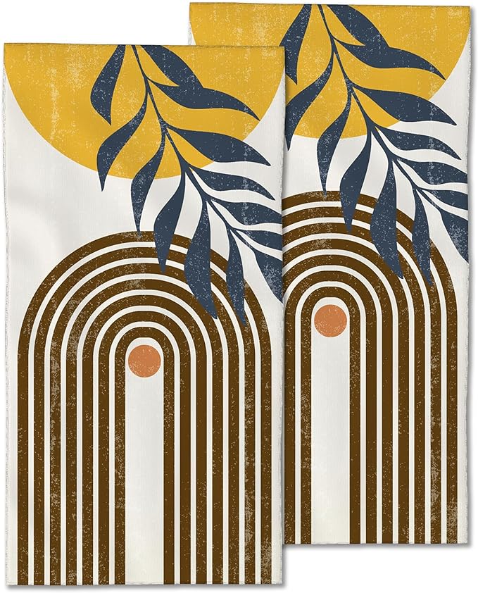 2 Pack Hand Bath Towel,Boho Sun and Leaves Fingertip Towel Bathtub Decorative Bath Towel Bathroom Kitchen Towel Set Highly Absorbent SPA Gym Towels 14x28 Inch