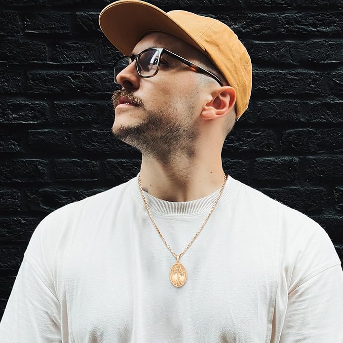 Picture Locket Necklace for Women Men Rose 14K Real Gold 925 Sterling Silver Jewelry Heart Locket Necklace that Holds Pictures Tree of Life Viking Wolf Celtic Knot St Christopher St Michael Pendant