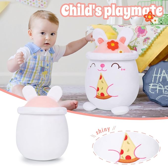 - 【Size】Kawaii cuddly rabbit plushie is 8" height. Palm size, soft squishy plush travelabe toy!