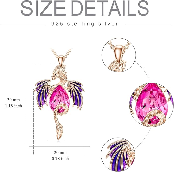 Dragon Necklace for Men Sterling Silver Birthstone Wyvern Necklace Embllished with Teardrop Shaped Crystal Jewelry for Women