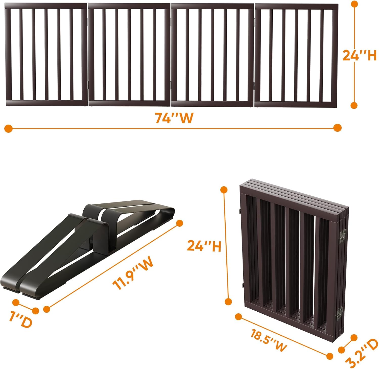 Freestanding Dog Gate Folding Brown Dog Gates for The House Doorways Stairs Pet Gates for Dogs, Doogie Puppy Fence Gate