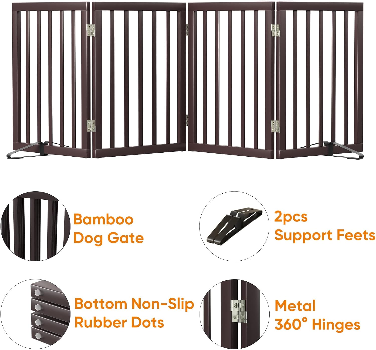 - Stable and Durability: This freestanding pet gates for dogs is designed with an attractive bamboo surface and sturdy non-slip rubber bottom dots that are very stable and strong when used with the support feet, and will not cause potential damage to your home. This versatile dog gate indoor is a pet enclosure, room divider, and dog gates all in one to meet all aspects of your scenario!