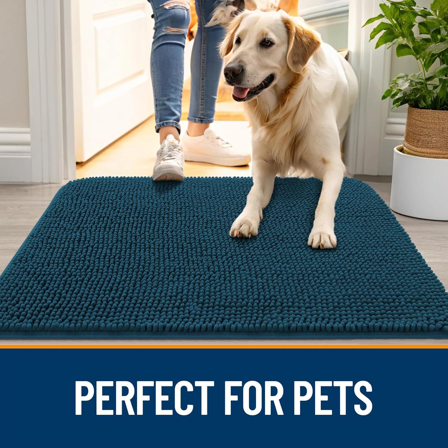 OLANLY Dog Door Mat for Muddy Paws 70x24, Absorbs Moisture and Dirt, Absorbent Non-Slip Washable Doormat, Quick Dry Chenille Mud Mat, Entry Indoor Entryway Carpet for Inside Floor, Atlantic Blue