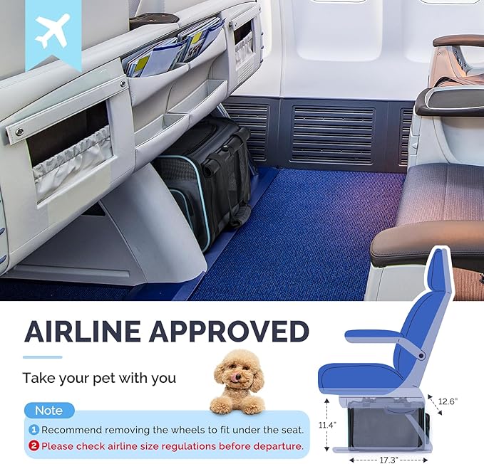 - The Perfect Pet Travel Companion: Designed for small pets up to 15 lbs, this carrier is ideal for vet visits, air travel, and car journeys. It meets specific airline carry-on standards (check regulations before flying), and doubles as a pet safety seat