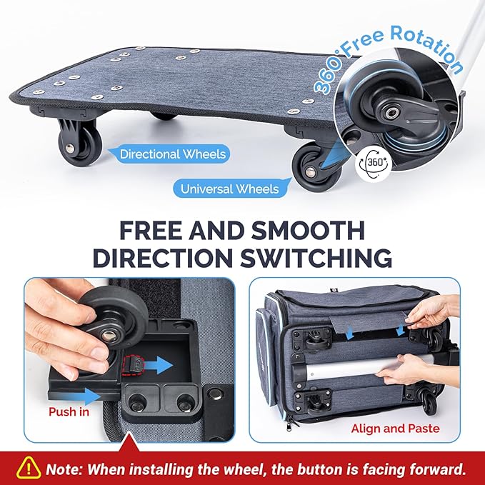 MIU Color Rolling Pet Carrier with Wheels Under 15 lbs, Airline Approved Foldable Soft Carrier for Small Dogs and Cats, Dog Carrier with Wheels for Car Road Trips Travel Camping Outdoor