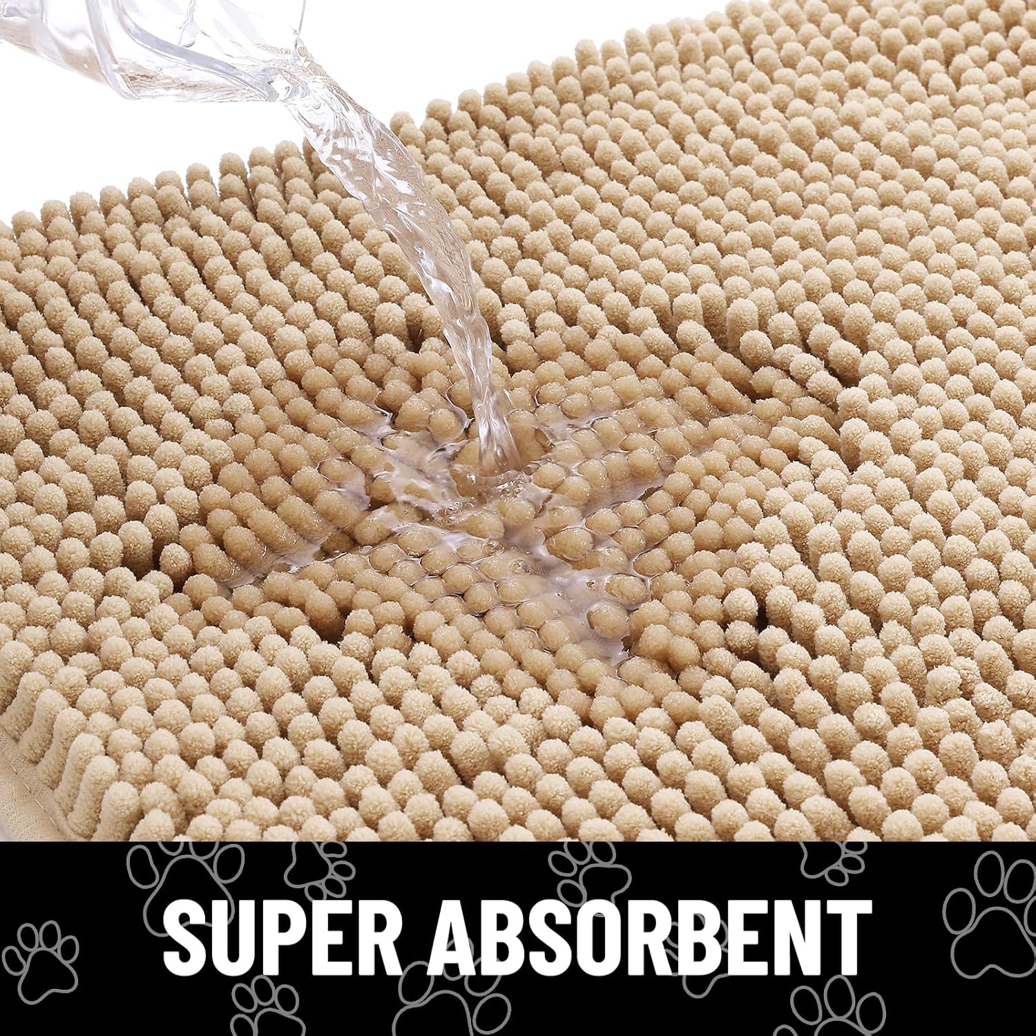 Smiry Dog Door Mat for Muddy Paws, Absorbent Dirt Trapper Non Slip Quick Dry Washable Chenille Mat for Mud Dogs, Entry Rug for Indoor and Outdoor (24x16 Inches, Beige)