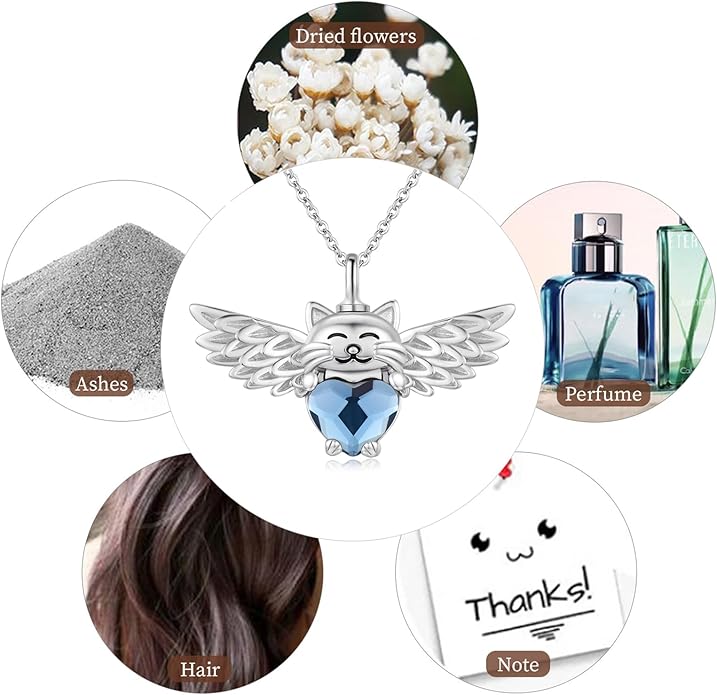 - ❤Keepsake Ashes Jewelry Pendant Size❤– Smilling cat angel cremation necklaces size: 34mm / 1.33 inch; crystal size: 9mm x 10mm(0.35'' x 0.39''); chain length: 18''+2'' extension rolo chain, the length of the necklace can be adjusted freely. Small Capacity.