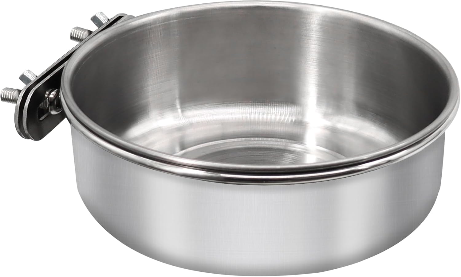 Large Bird Feeding Dish Cups,Parrot Food Bowl Cage with Clamp Holder Stainless Steel,Birdcage Coop Water Feeder for Cockatiel Parakeet Macaw Finches Lovebirds Small Dog Cat Animal(1 Pack, Large)