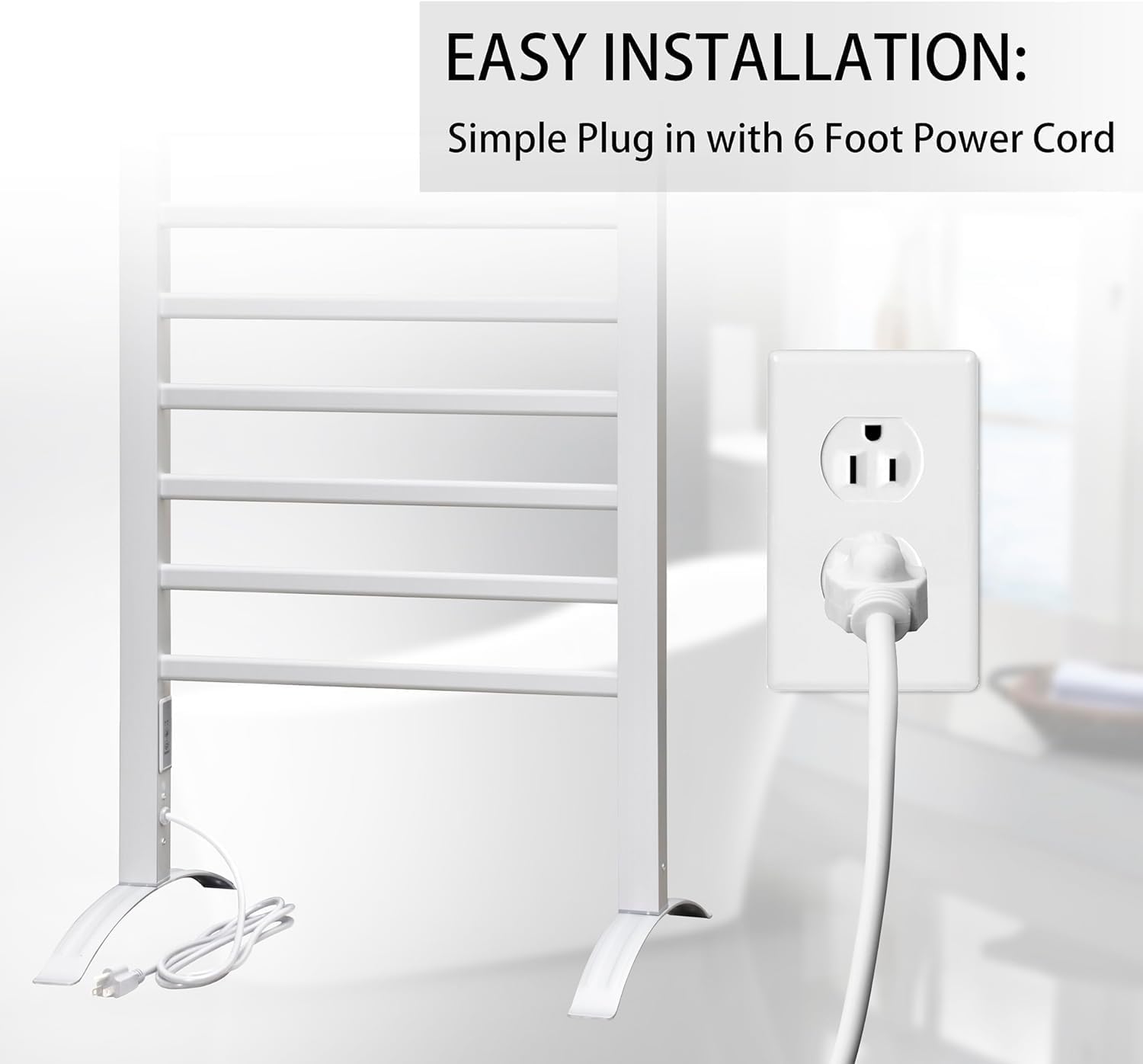 - Premium Quality with Elegant Look: The bath towel warmer is made of aluminum, easy to clean and durable use. IP56 waterproof standard and wall-mounted or freestanding design maximizes your floor space.