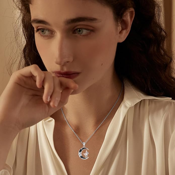 Gothic Jewelry Bat/Cat/Wolf/Dragon/Owl/Fox/Spider/Sun Pendant Sterling Silver Crescent Moon Necklace for Women Girls Black Jewelry Gifts