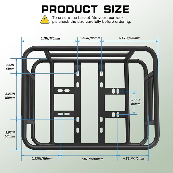 - 𝗘𝗮𝘀𝘆 𝗜𝗻𝘀𝘁𝗮𝗹𝗹𝗮𝘁𝗶𝗼𝗻:This bicycle basket is suitable for bicycles and electric bikes, it can be installed in only two steps, making it easy to install and remove.𝗧𝗼 𝗲𝗻𝘀𝘂𝗿𝗲 𝘁𝗵𝗲 𝗯𝗮𝘀𝗸𝗲𝘁 𝗳𝗶𝘁𝘀 𝘆𝗼𝘂𝗿 𝗿𝗲𝗮𝗿 𝗿𝗮𝗰𝗸,𝗽𝗹𝘀 𝗰𝗵𝗲𝗰𝗸 𝘁𝗵𝗲 𝘀𝗶𝘇𝗲 𝗰𝗮𝗿𝗲𝗳𝘂𝗹𝗹𝘆 𝗯𝗲𝗳𝗼𝗿𝗲 𝗼𝗿𝗱𝗲𝗿𝗶𝗻𝗴.