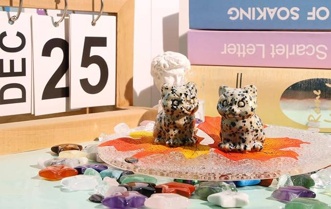 - Dalmatian Jasper Crystals Cat Gift:Cats are considered to be independent and free animals with a mysterious beauty. Cats can accompany soft, comfortable and warm family life. They also represent a symbol of peace and good luck.it can bring certain help to the cause. Also means the best wishes, especially suitable for Birthday, Christmas, Graduation as a gift for lovers, friends, parents as luck and happiness