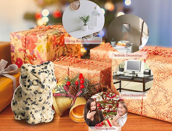 - Specification,Size:length:1.14inch,width:1.22inch,High:1.5 inch. Material: Natural Dalmatian Jasper crystal stone, Package: 1PC crystal cat figurines, packed with gift box, ready for gift.The suitable size is easy to carry, put it in your pocket .