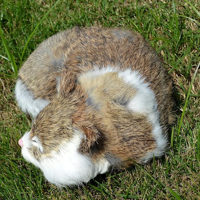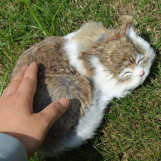 - Realistic furry sleeping cat brown feline , Approximately 8.27*6.7*2.36 inches (L*W*H), smaller than real adult cat but like a baby cat.
